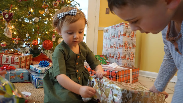 For the last few weeks whenever we'd ask Ever what Santa was going to bring her she'd exclaim, "BABIES!" (we're going through a major baby doll phase right now). So when she opened this gift and saw the twin babies inside she literally clapped, squealed and started kissing the box. Heart. Melted.
